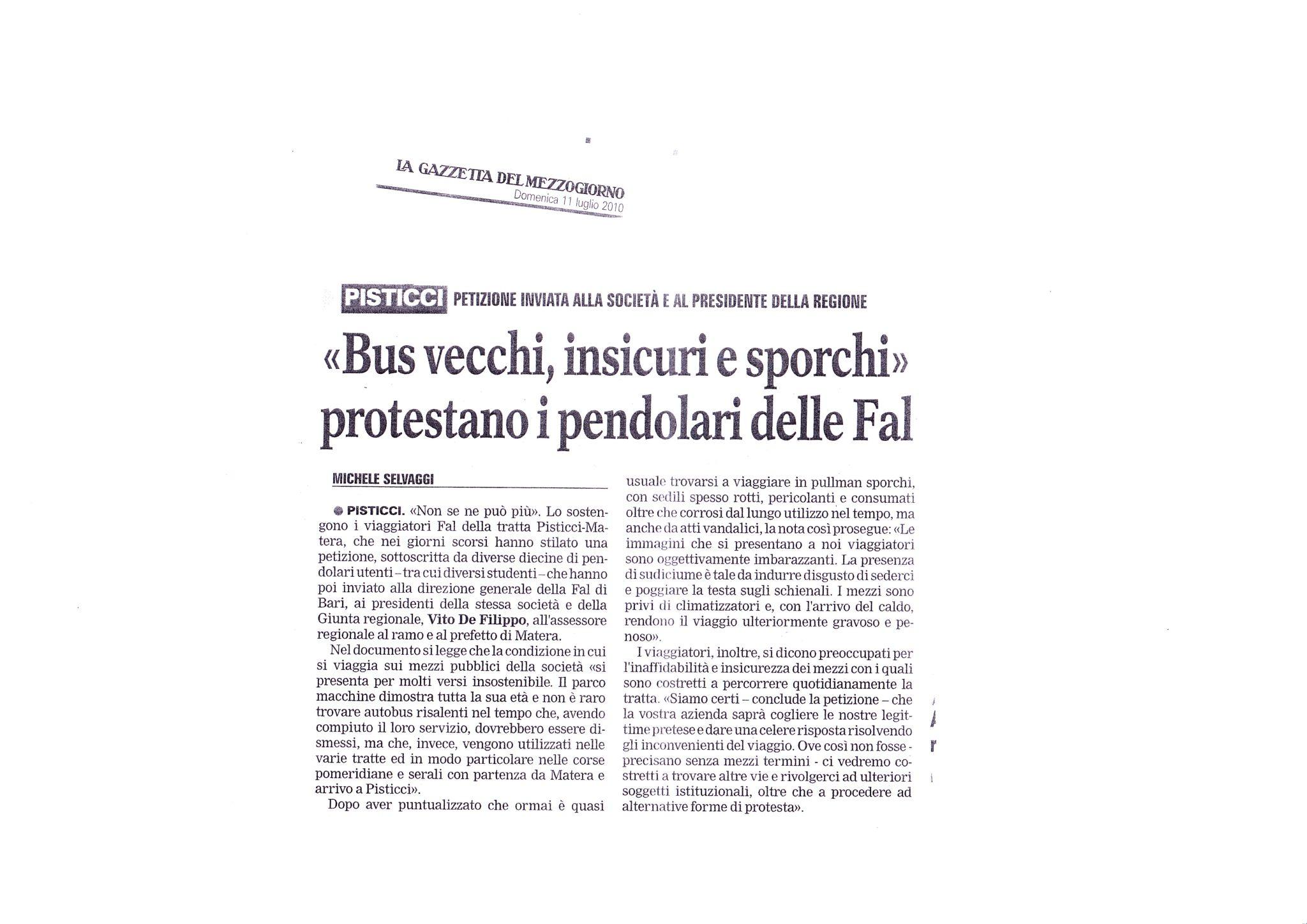 Ferrovie Appulo Lucane > Rassegne stampa > Bus vecchi, insicuri e sporchi protestano i pendolari delle FAL