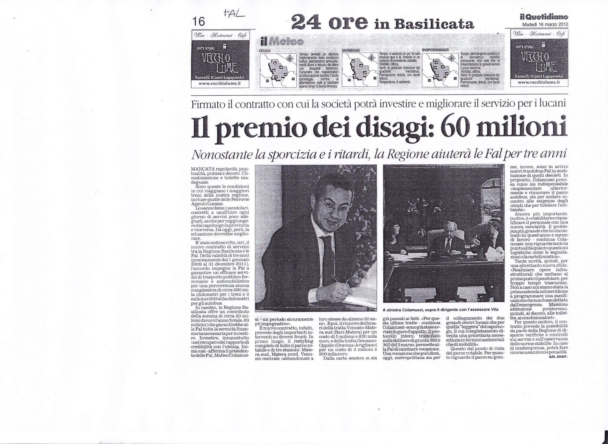 Ferrovie Appulo Lucane > Rassegne stampa > Il premio dei disagi: 60 milioni