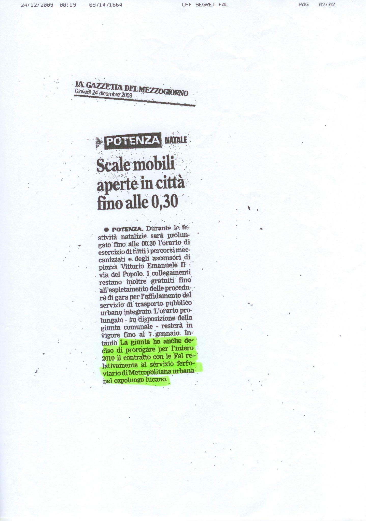 Ferrovie Appulo Lucane > Rassegne stampa > Scale mobili aperte in città fino alle 0,30