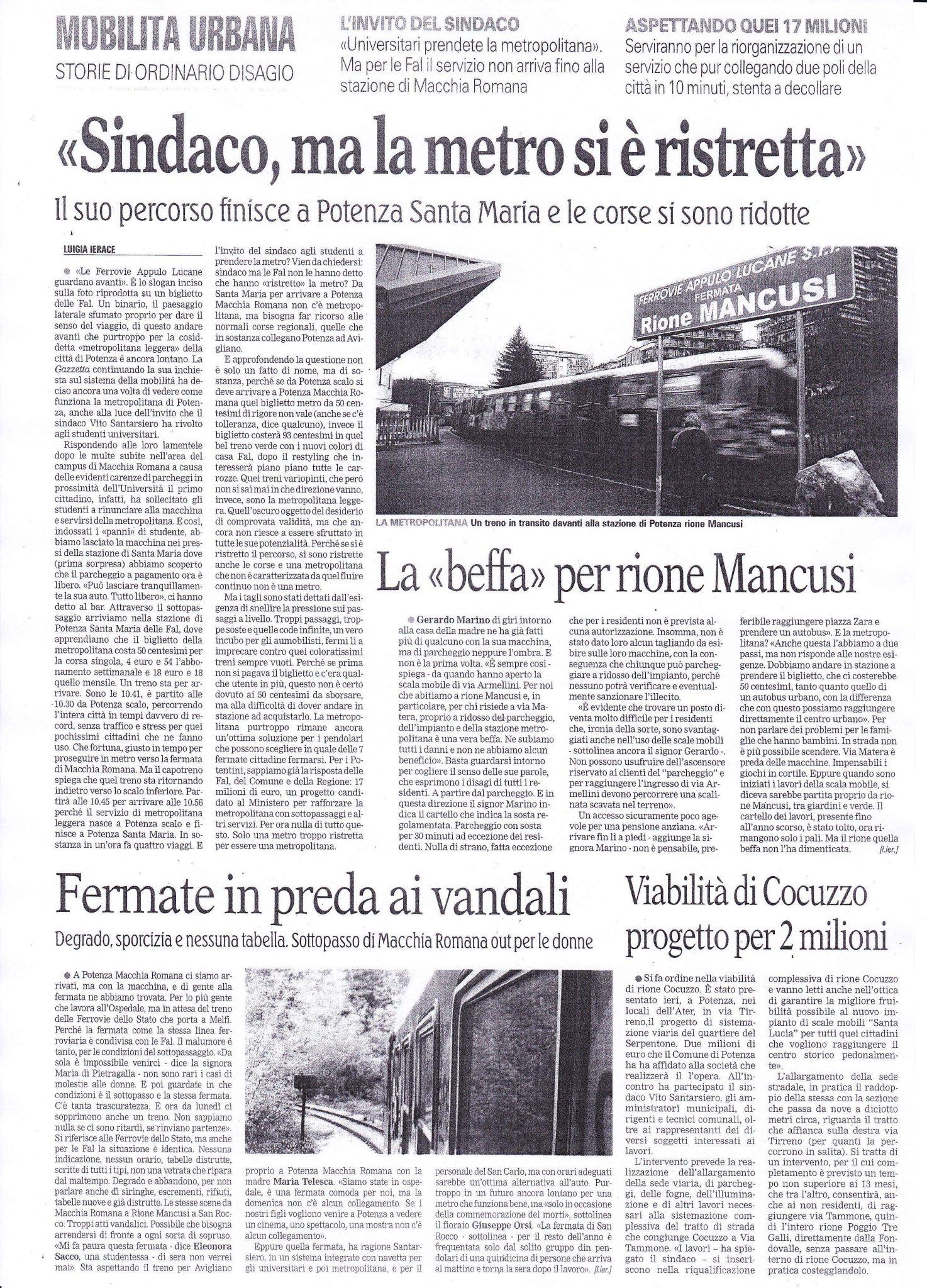 Ferrovie Appulo Lucane > Rassegne stampa > Sindaco, ma la metro si è ristretta