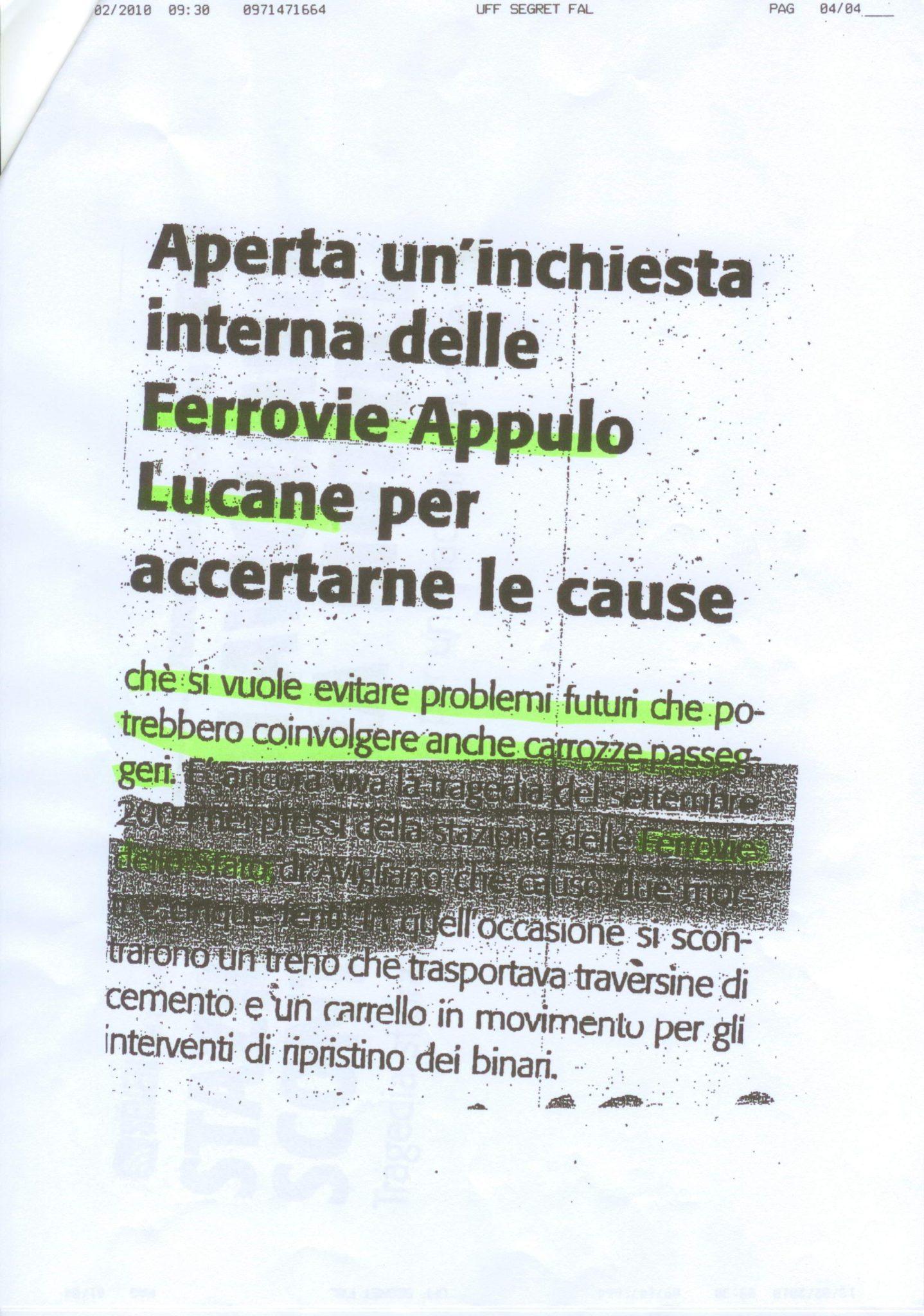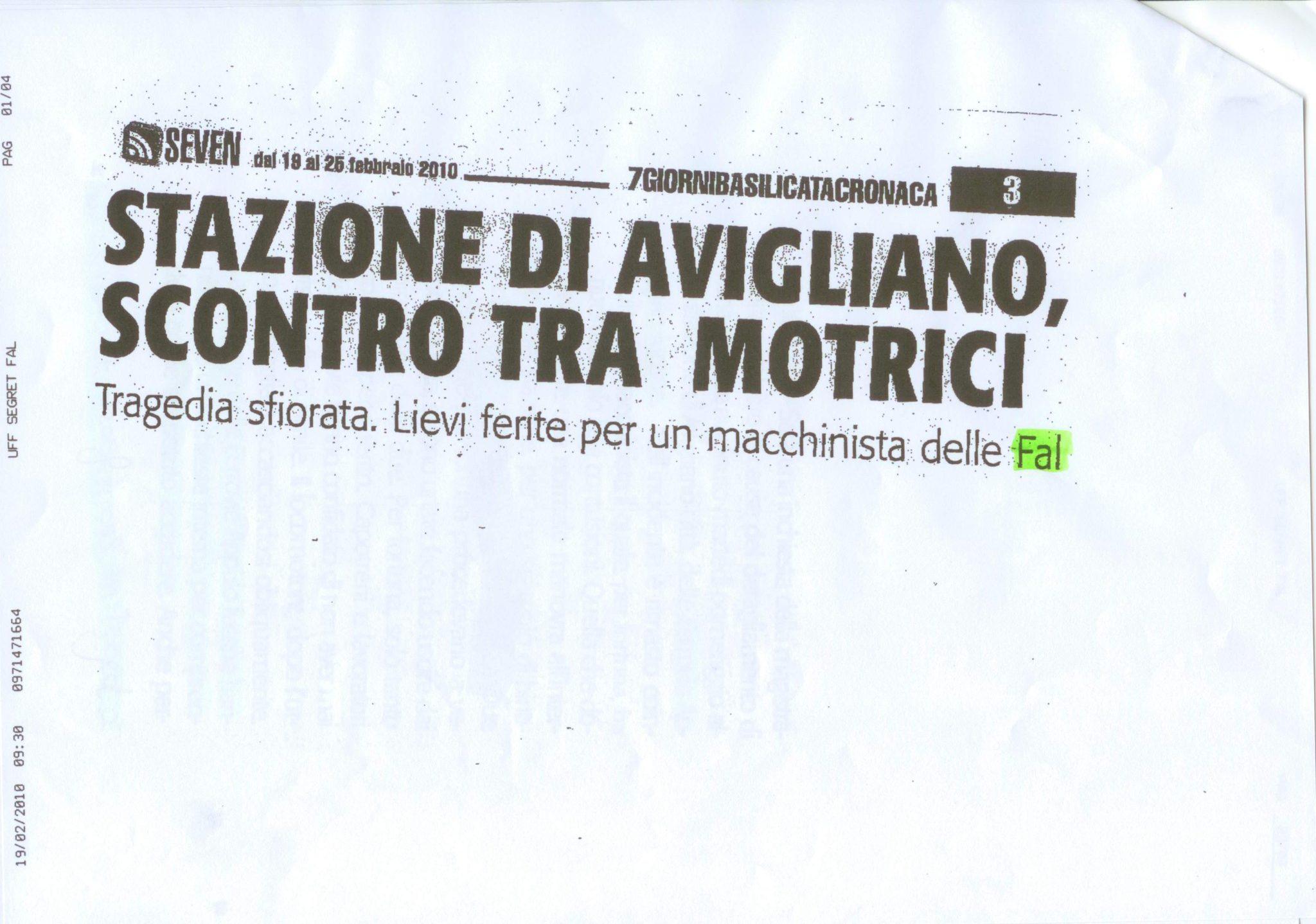 Ferrovie Appulo Lucane > Rassegne stampa > Stazione di Avigliano, scontro tra motrici