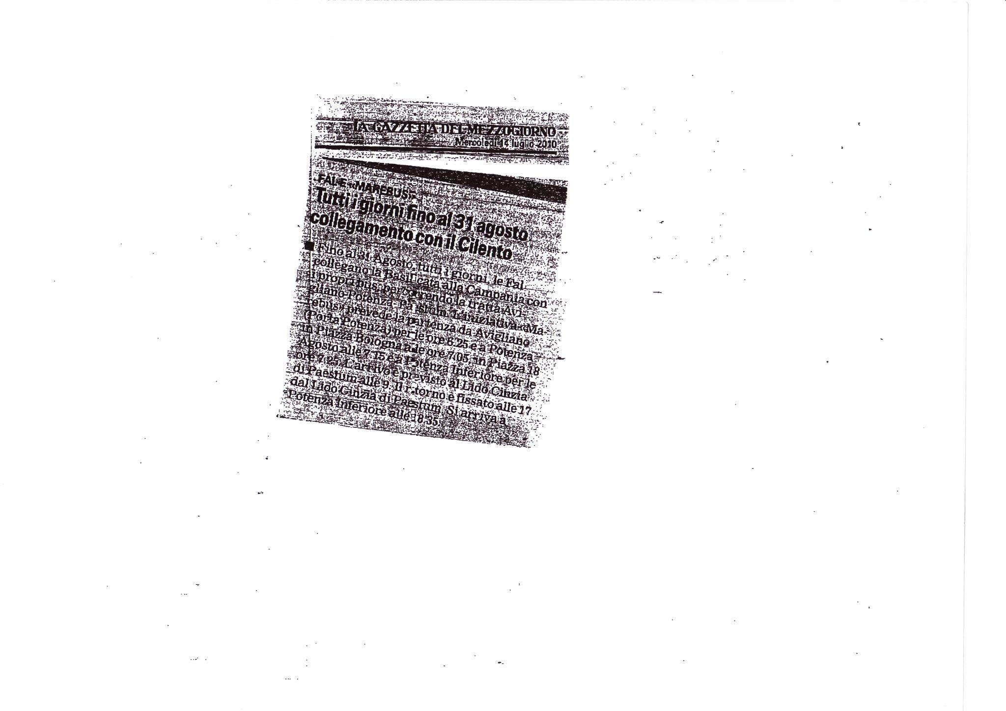 Ferrovie Appulo Lucane > Rassegne stampa > Tutti i giorni fino al 31 agosto collegamento con il Cilento
