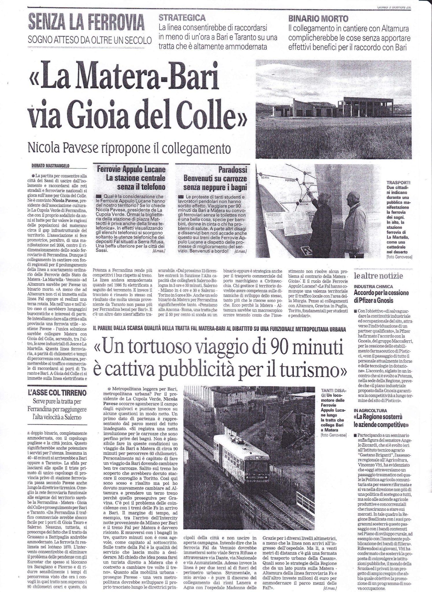 Ferrovie Appulo Lucane > Rassegne stampa > Un tortuoso viaggio di 90 minuti è cattiva pubblicità per il turismo