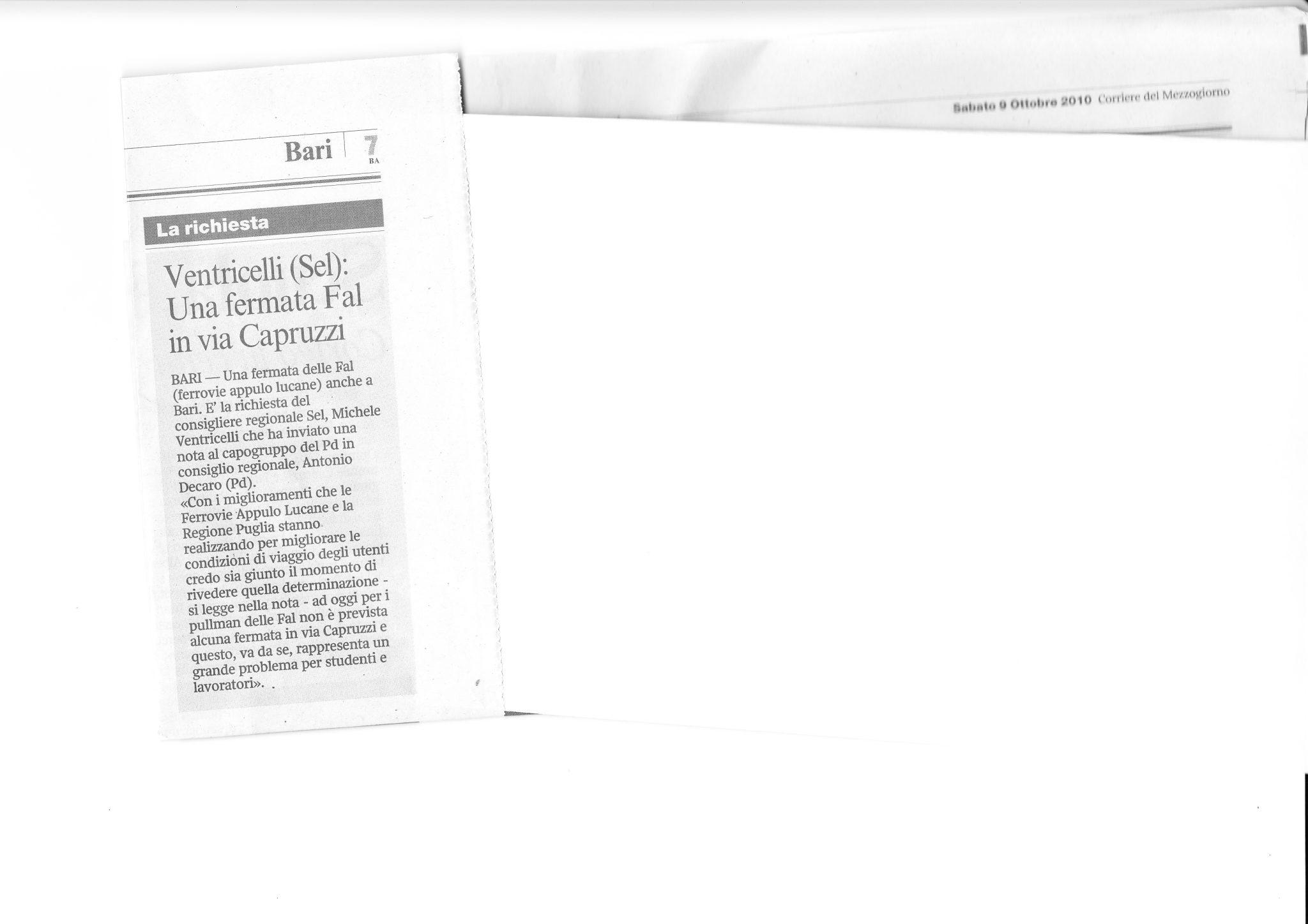 Ferrovie Appulo Lucane > Rassegne stampa > Ventricelli (Sel): Una fermata Fal in via Capruzzi