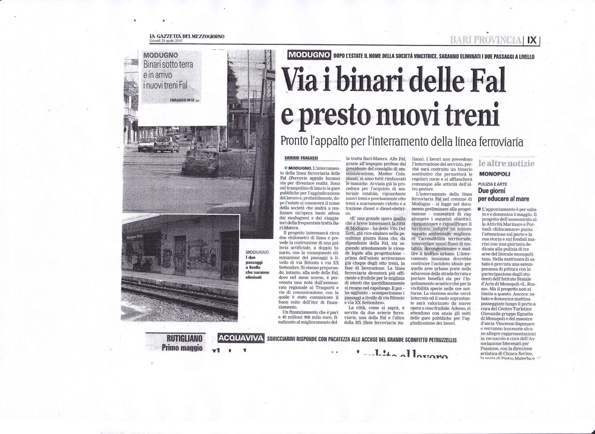Ferrovie Appulo Lucane > Rassegne stampa > Via i binari delle FAL e presto nuovi treni